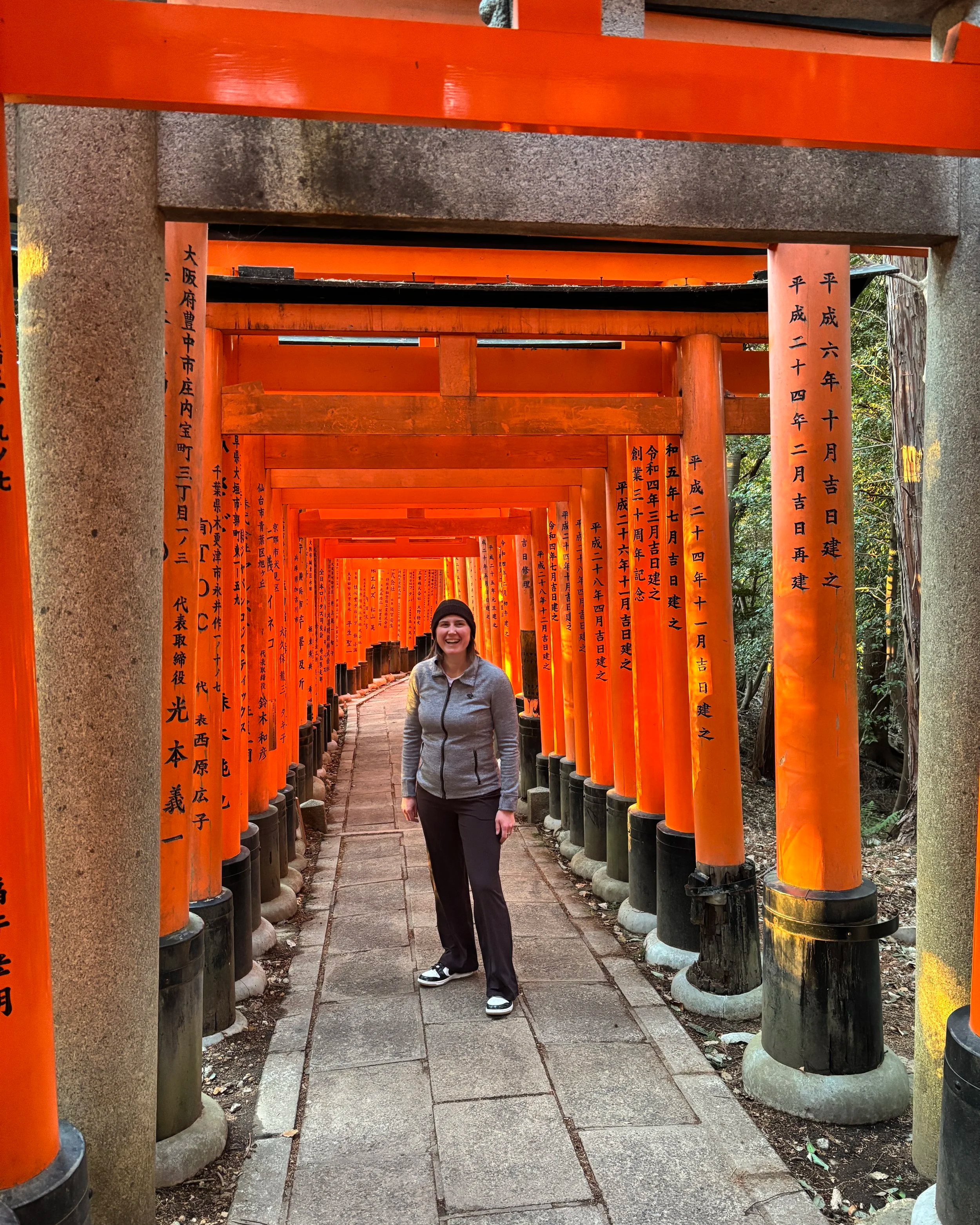 My biggest tips for Fushimi Inari Shine are: 1) wear comfortable shoes, as the entire loop is about 3 miles and there are lots of stairs; 2) keep walking up – most people stop and don’t do the entire loop, so if you keep going you’ll be able to take photos without a ton of people; 3) go early in the morning or near sunset if you want to be around less people. It’s open 24 hours, so you can go when it’s dark. It was getting dark in the second half for me, but there are lights to guide the way.