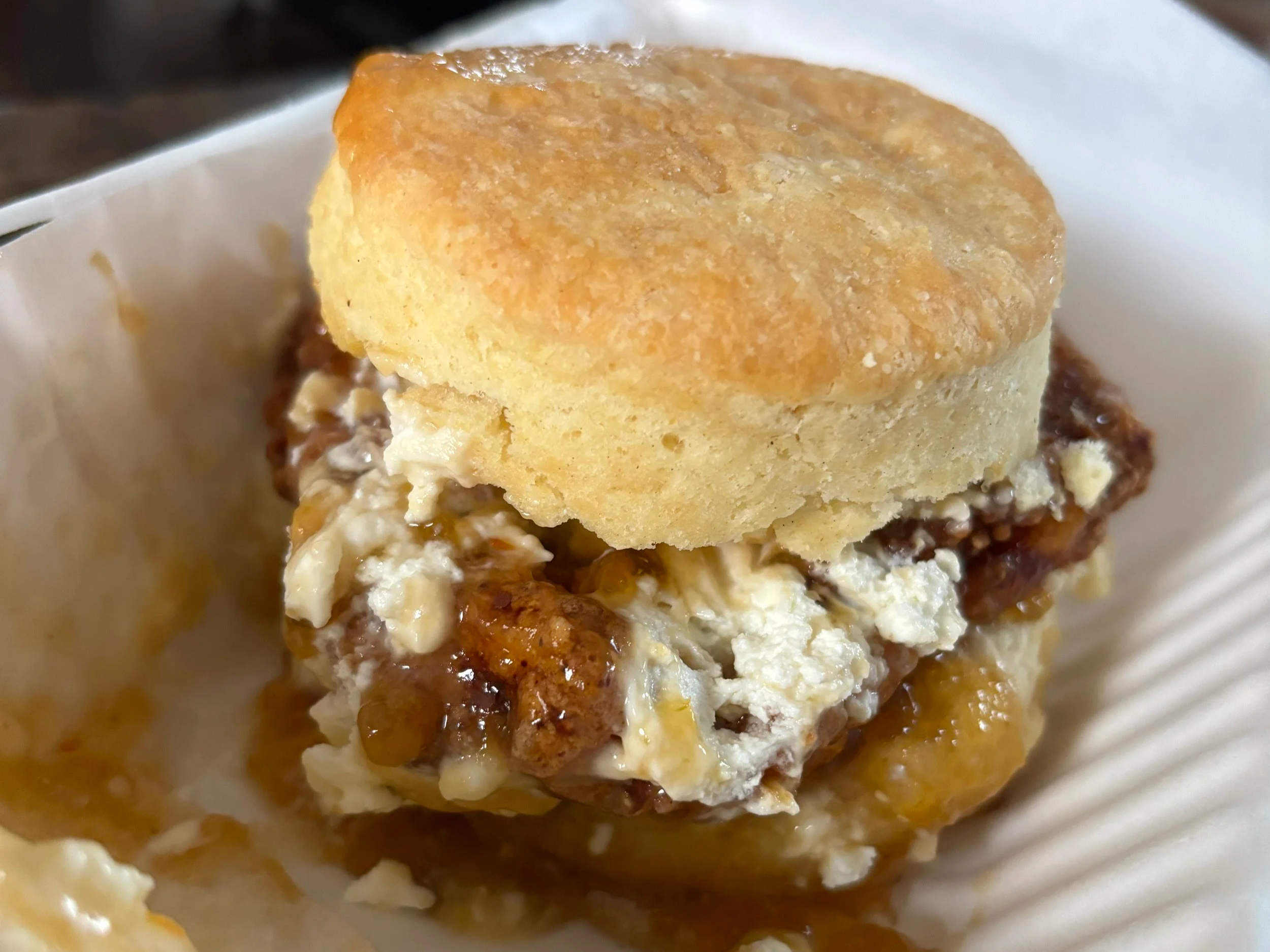 Biscuit Belly: This is a chain, but it’s a good one, and the location in Louisville was the first one. I got the G.O.A.T sandwich and the Bonuts (biscuit donut holes with bourbon cream cheese frosting) as my post-race meal. Both were delish! There is often a line, so be prepared to wait, but you can also order ahead online.